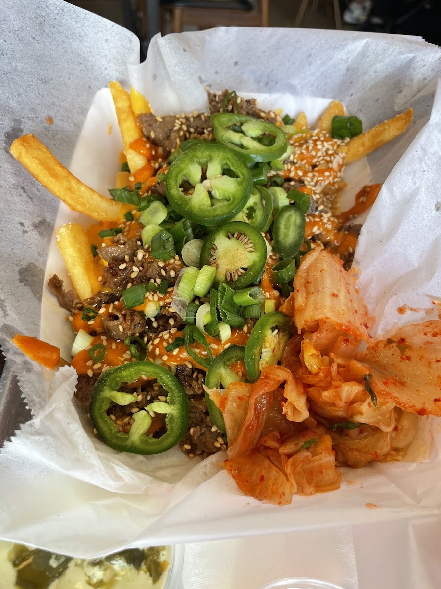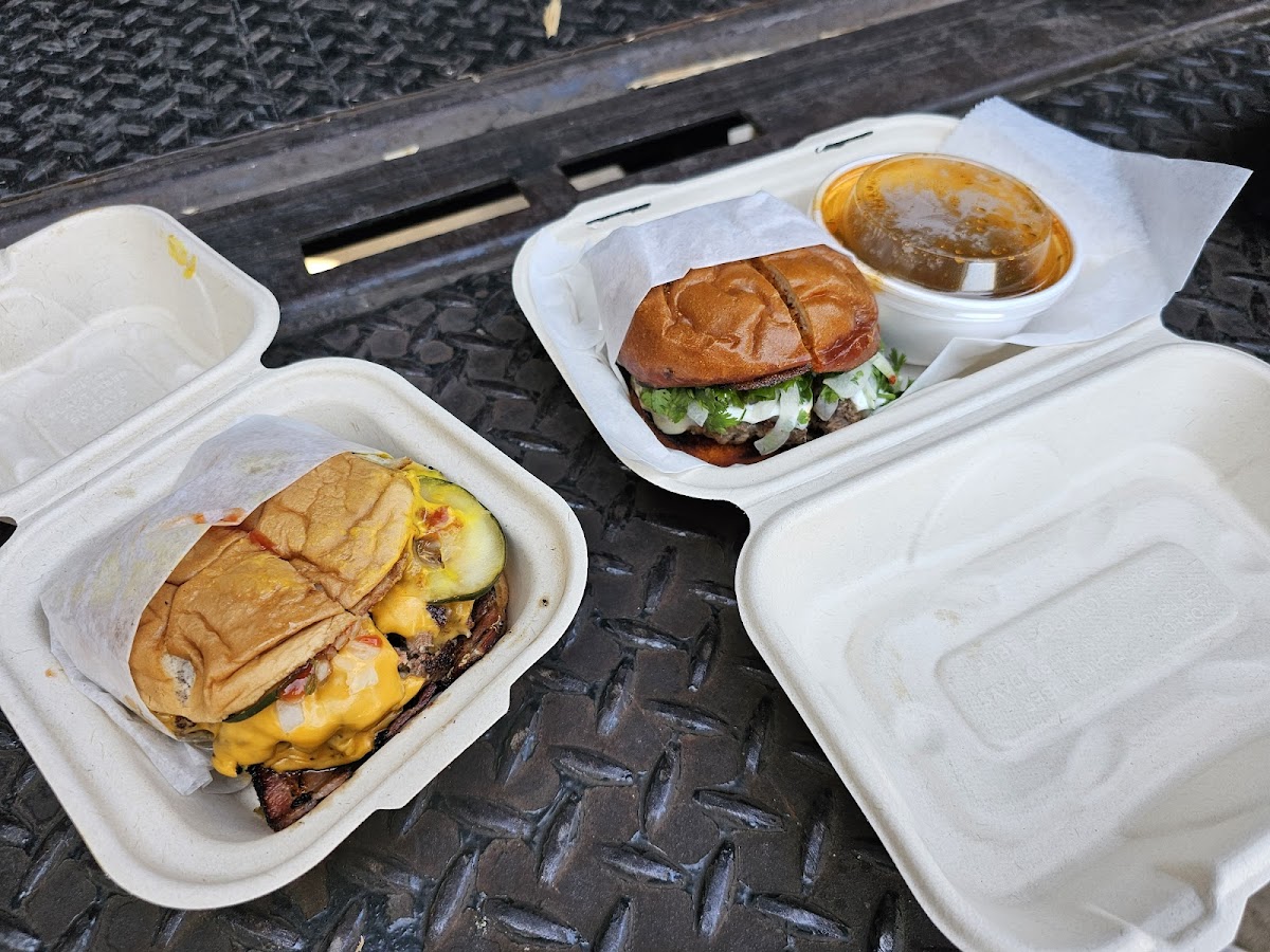 Yum! Got a double smash, gogi goey (bulgogi/kimchi) burger, and birria fries. Burger was absolutely perfect. Exactly how I like my burgers. Classic and delicious. Bulgogi burger was also great. The only tricky part is biting through fat pieces of kimchi. It is not going to happen, so you're gonna have to have a bit bite of kimchi. Ohh noooo!! :) Birria fries were good too. I would say the flavoring leads way towards chili vs birria I've had previously. Still tasty, but maybe not what you'd expect. Service was awesome. Guys were very friendly. One huge plus was that altough it was a food truck, they are partnered with the brewery on site. This means there is plenty of great indoor/outdoor seating and free water. You don't need to order anything at the bar. When I go back, I plan to get a triple smash.